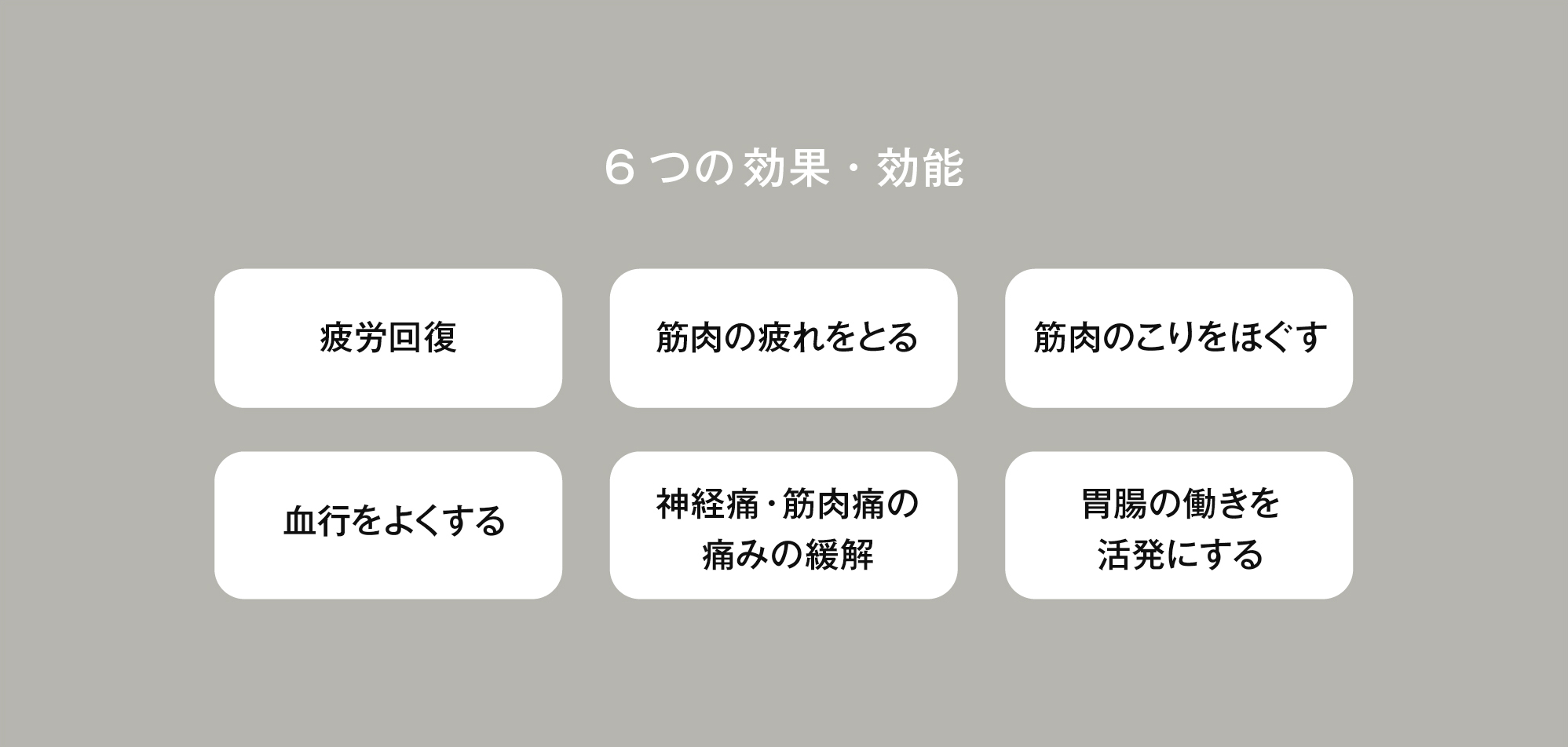 血流を促進し、肩こりや腰痛などこわばった筋肉をほぐす効果が期待できます。また重要な神経が集中する首へ照射することで、身体の末端までケアができるのも特徴です。じんわりと温まる感覚が、日々の疲れを癒してくれます。